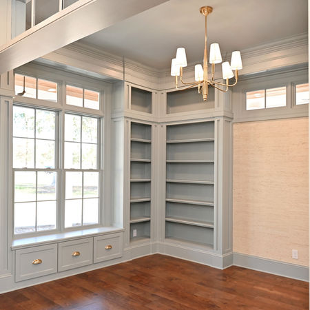 Upon entering, the interior is thoughtfully organized to create distinct yet cohesive spaces that serve various purposes. With a large family engaged in homeschooling, every area has been designed with education and functionality in mind. The foyer leads into the welcoming piano room, where music creates a warm atmosphere. Next to it is the library, a dedicated space lined with custom-built bookshelves, offering a quiet retreat for family members to focus on their studies or enjoy reading.